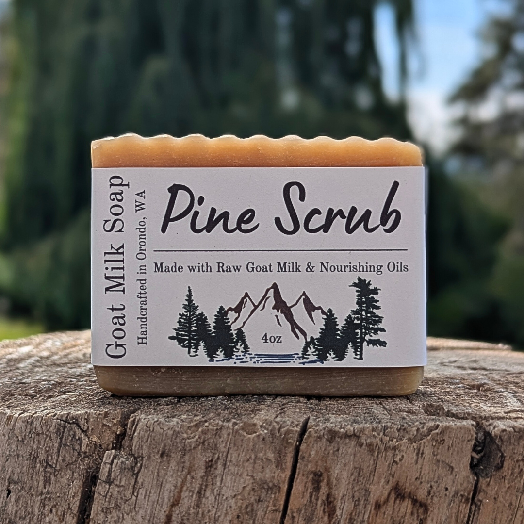 Revitalize your senses with Pine Scrub Goat Milk Soap. Handcrafted with the essence of pine and nourishing goat milk, it offers a refreshing cleanse for all skin types.